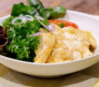 たっぷり玉ねぎと揚げ鶏の香味ソースかけ