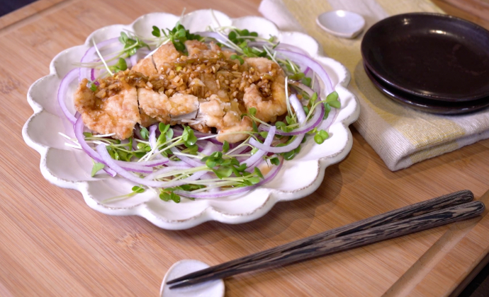 RECIPIたっぷり玉ねぎと揚げ鶏の香味ソースかけ