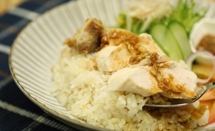 鶏のスープで炊いたご飯にゆで鶏をのせ、タレをかけて食べるタイ料理「カオマンガイ」。ご自宅で簡単に調理出来るよう、炊飯器でアレンジしました。しっとりジューシーな鶏肉と、鶏だしの染みたご飯。甘辛いタレが食欲をそそります。