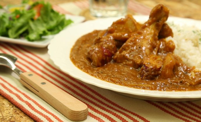 | Step7 | 手羽もとが柔らかくなったら火を止めてカレールーと残り半分の生姜の千切りを入れ、ルーが充分にとけたら弱火の火加減でトロみが出るまで煮込みます |